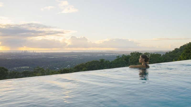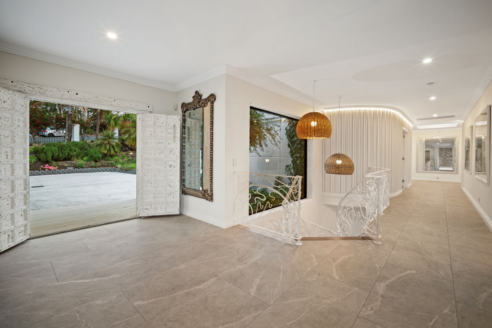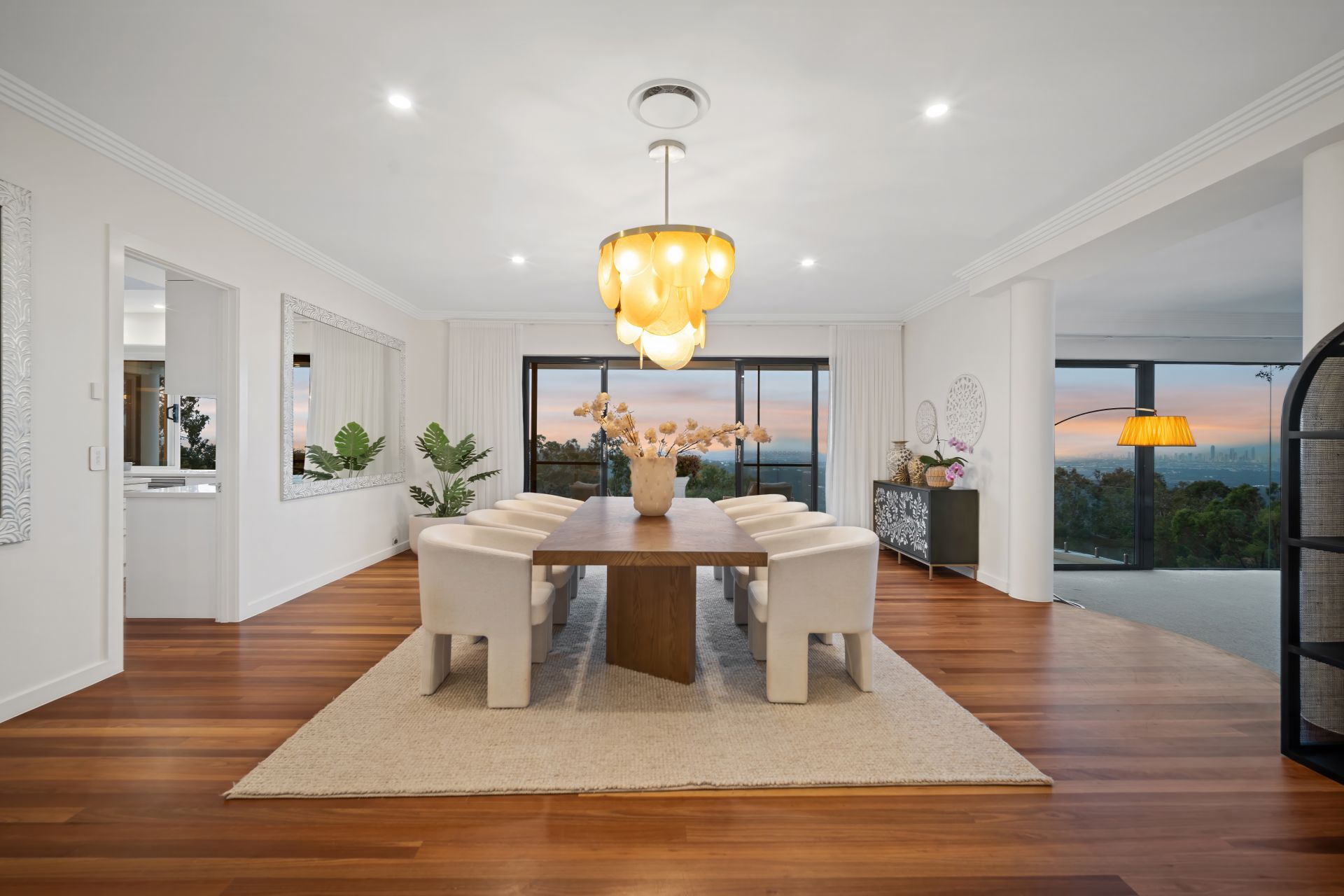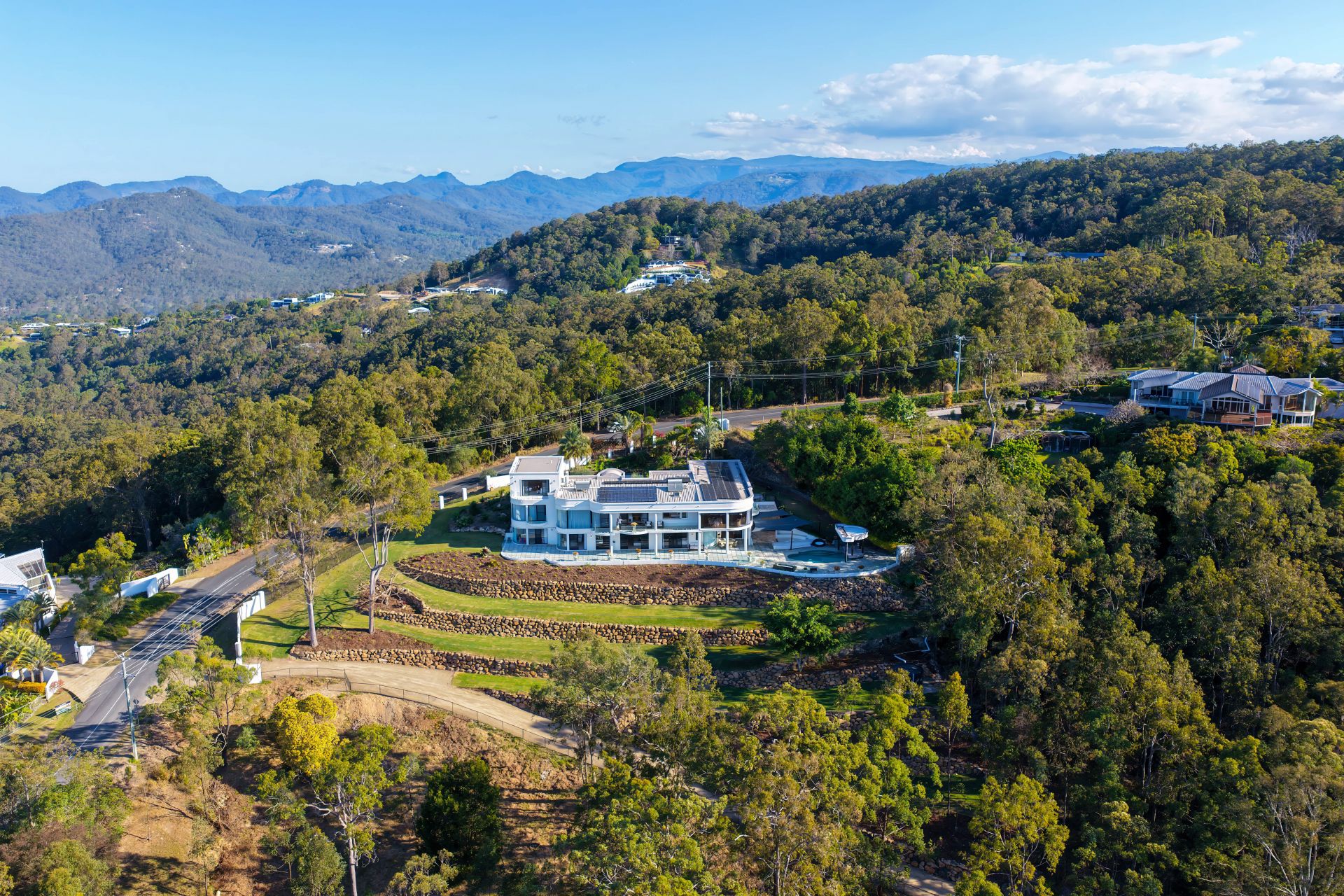 Commanding panoramic views of the ocean, city skyline and hinterland, this tri-level concrete residence crowns a sprawling 4.5ha Tallai estate. Step through medieval-style doors into a Palm Springs-inspired sanctuary, where bold architectural features frame breathtaking outlooks at every turn.