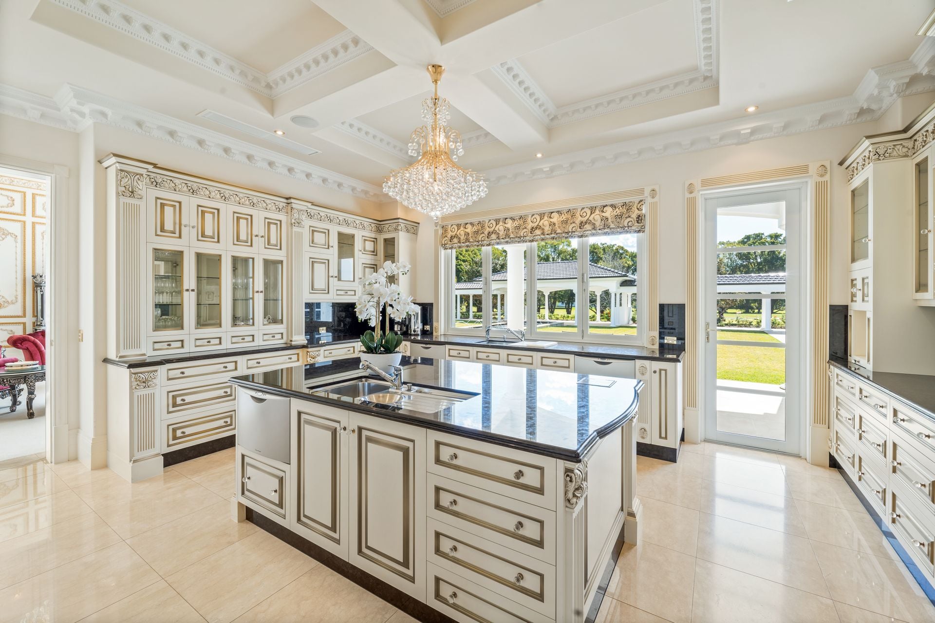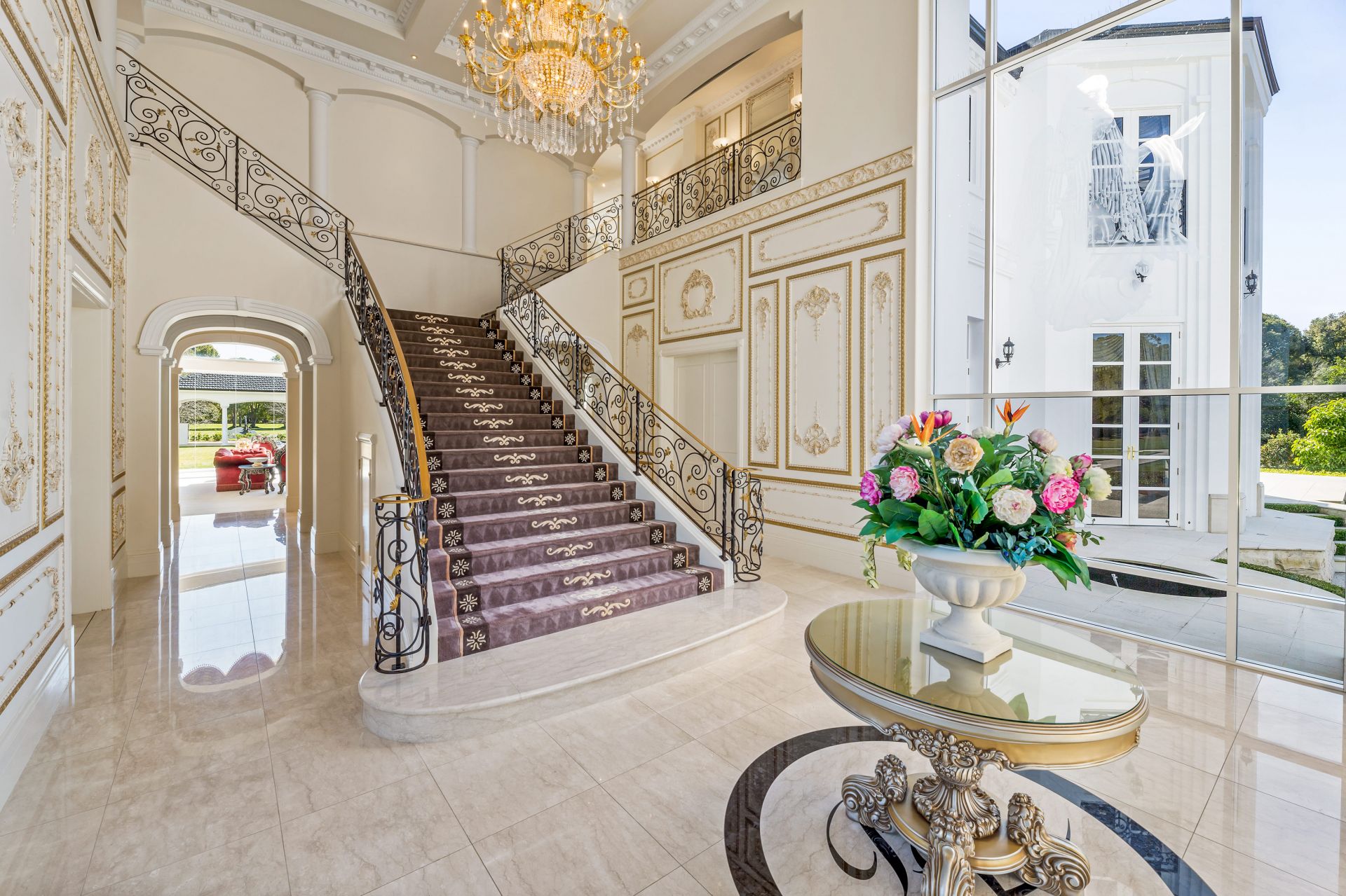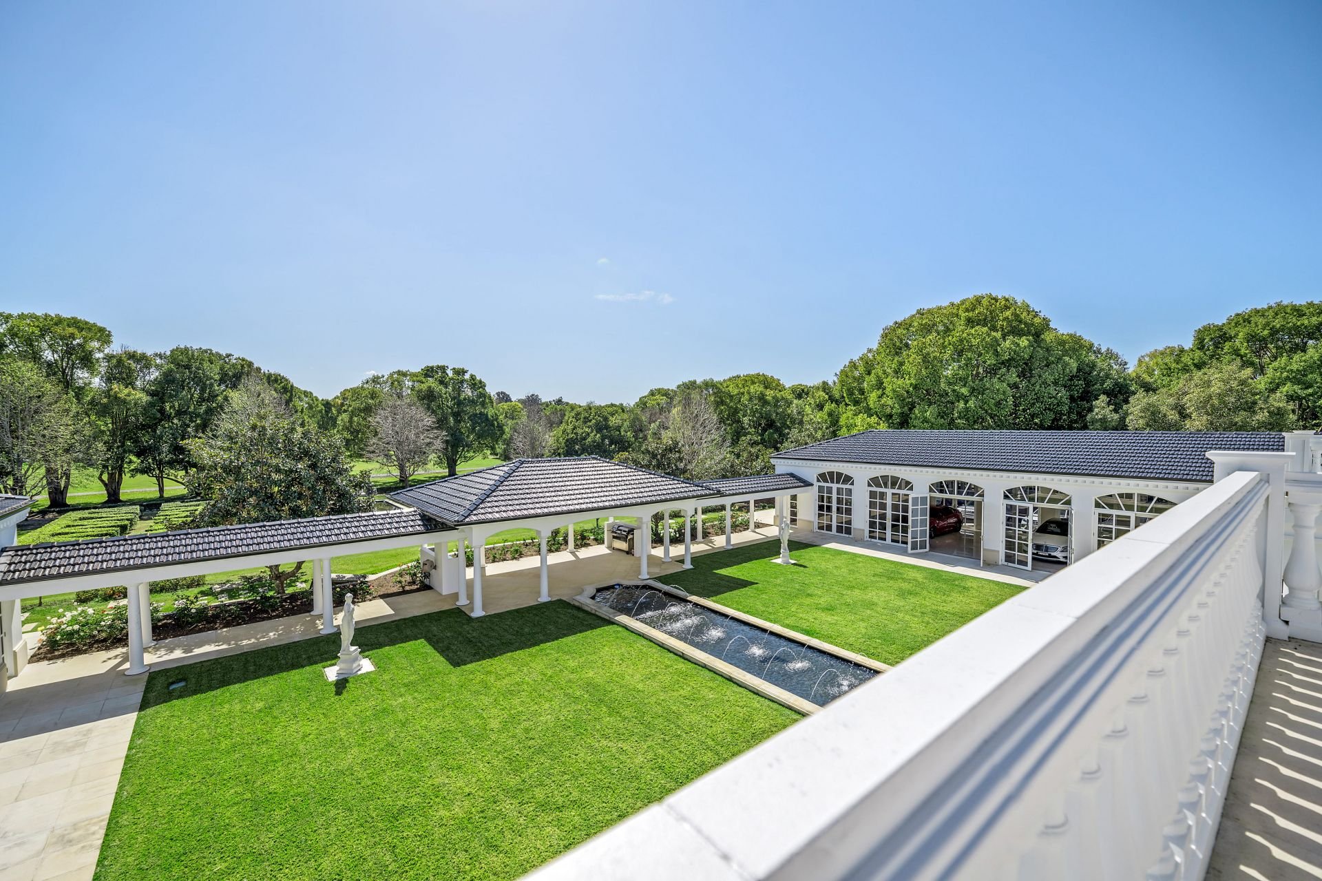 A majestic masterpiece designed by renowned architect Michael Witty in conjunction with landscaper Paul Bangay and interior designer Eleanor Davis, it rises elegantly from amongst meticulously landscaped gardens. Reminiscent of a grand European-inspired estate with expertly manicured hedges and flourishing fountains, a stately driveway and Porte-cochere ensure you arrive in style, every time. Boasting 10 palatial bedrooms and 10 bathrooms, custom-crafted decor, and furnishings grace each of the two distinguished levels, coupled with polished marble floors and soaring ornate ceilings. Multiple living areas are bathed in natural light from the desirable north-east aspect while a state-of-the-art kitchen with a walk-in cold room is perfection personified. A second kitchen is located beside the ballroom for lavish indoor or outdoor entertaining and doubles as a showroom-style 5 car garage.