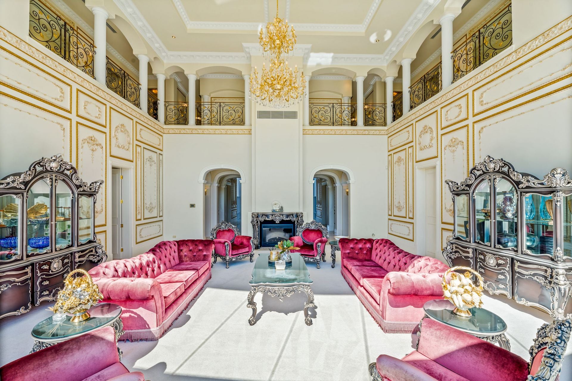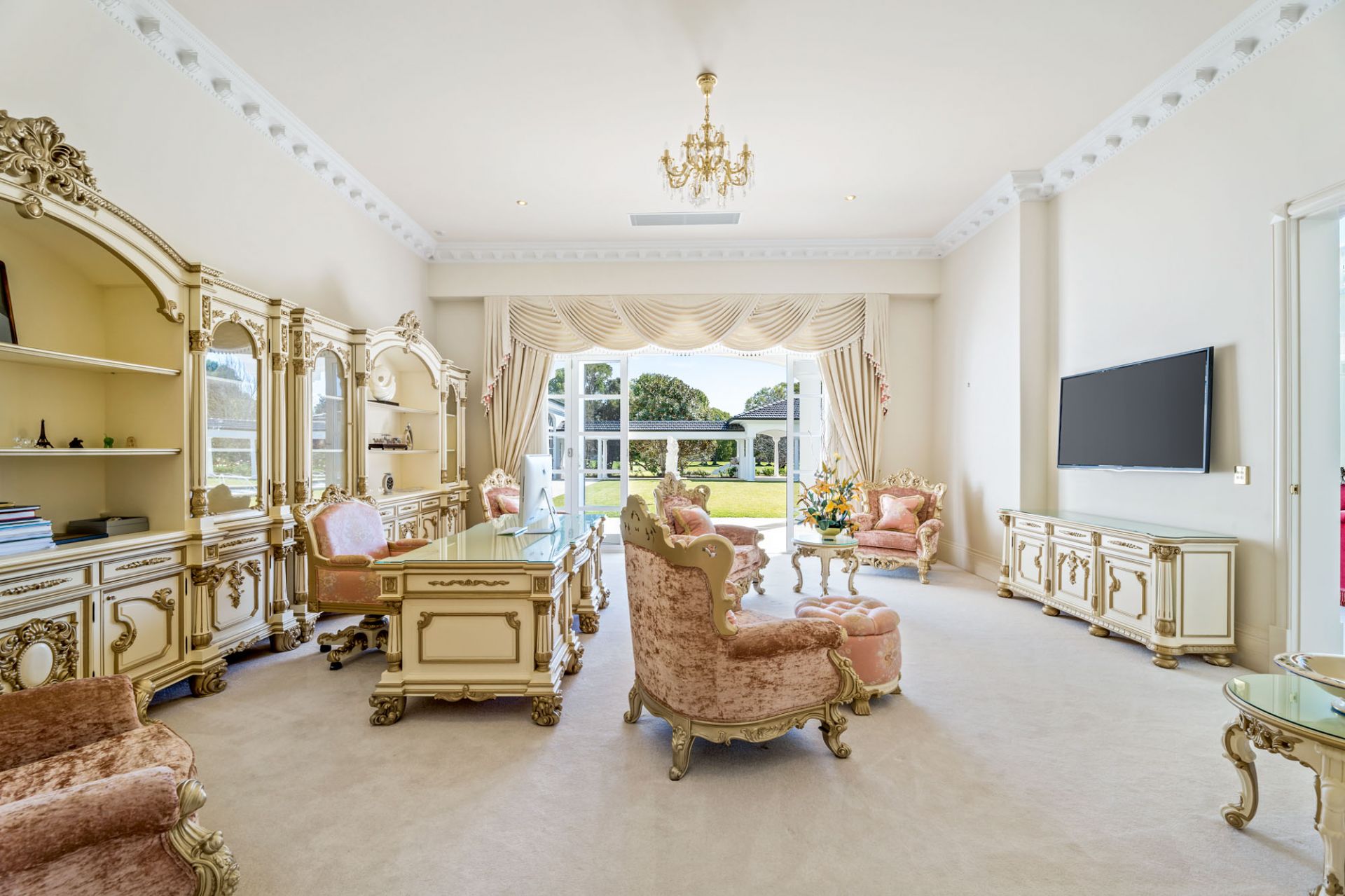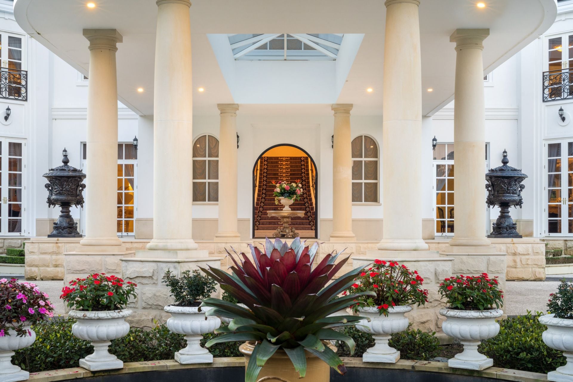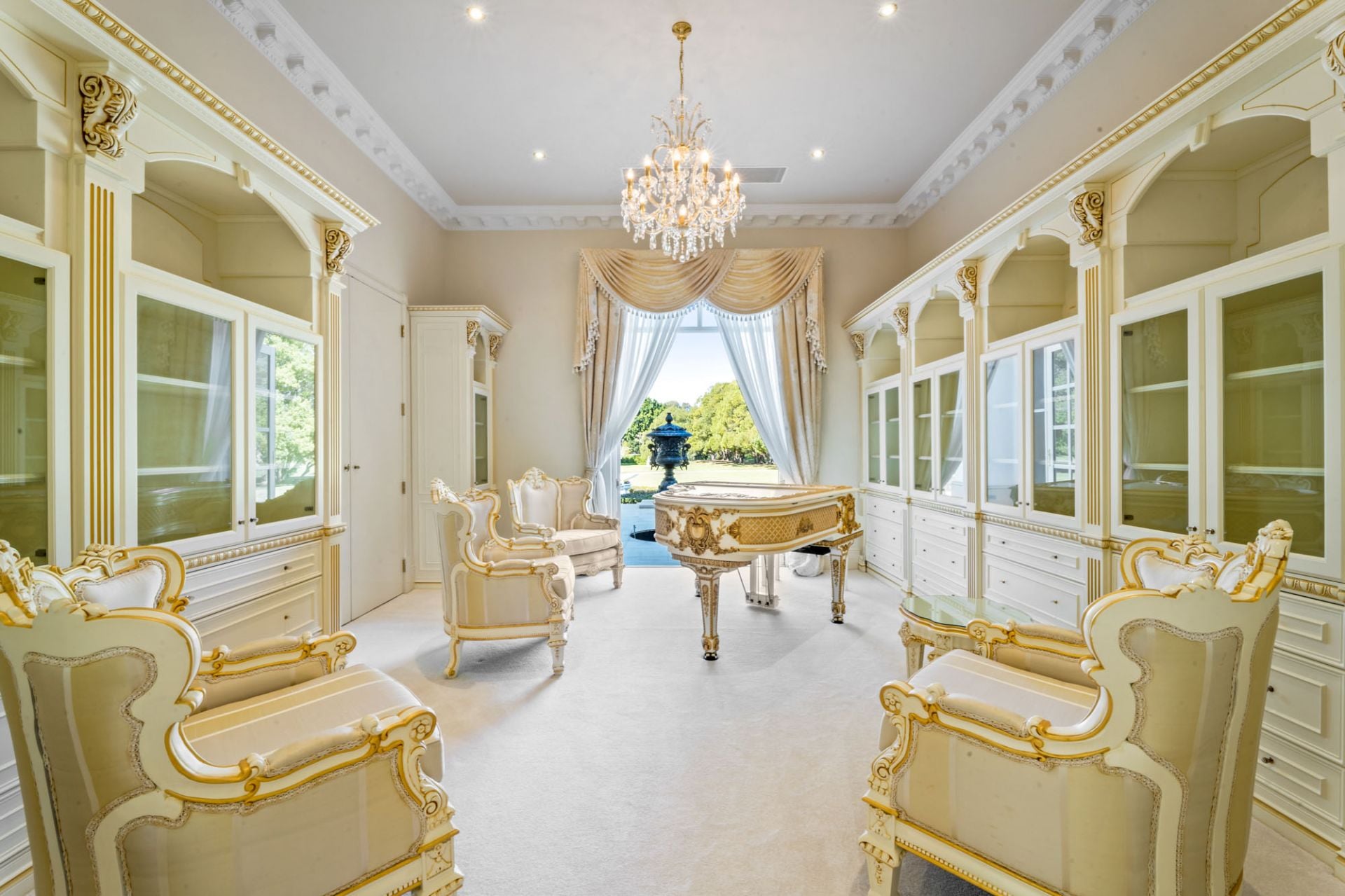 A majestic masterpiece designed by renowned architect Michael Witty in conjunction with landscaper Paul Bangay and interior designer Eleanor Davis, it rises elegantly from amongst meticulously landscaped gardens. Reminiscent of a grand European-inspired estate with expertly manicured hedges and flourishing fountains, a stately driveway and Porte-cochere ensure you arrive in style, every time. Boasting 10 palatial bedrooms and 10 bathrooms, custom-crafted decor, and furnishings grace each of the two distinguished levels, coupled with polished marble floors and soaring ornate ceilings. Multiple living areas are bathed in natural light from the desirable north-east aspect while a state-of-the-art kitchen with a walk-in cold room is perfection personified. A second kitchen is located beside the ballroom for lavish indoor or outdoor entertaining and doubles as a showroom-style 5 car garage.