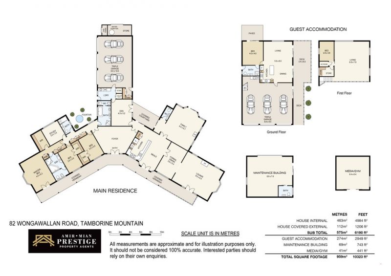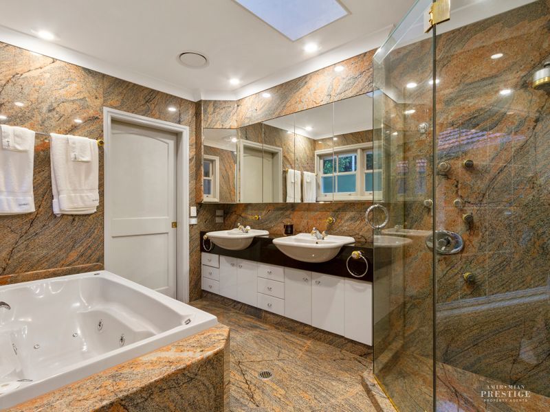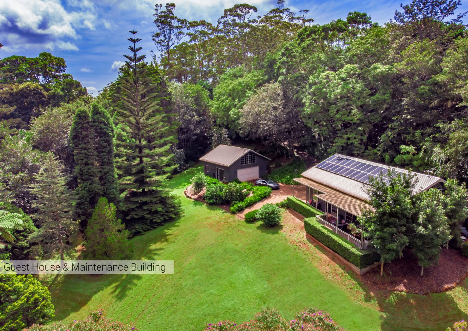 Privately tucked away behind the tennis court and overlooking the beautiful gardens and rainforests, the 274m2* Guest House offers superb flexibility and versatility to the accommodation of the main residence. With its attached oversized two story, 3 car fully finished garage and 16m* covered deck it works fantastically for those looking to have a separate private house for guests or extended family. The Accommodation includes elegant open plan living with granite over two pac kitchen, Miele appliances, central air conditioning, an oversized ensuited bedroom enjoying its own private patio and a mezzanine
