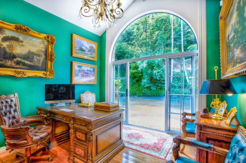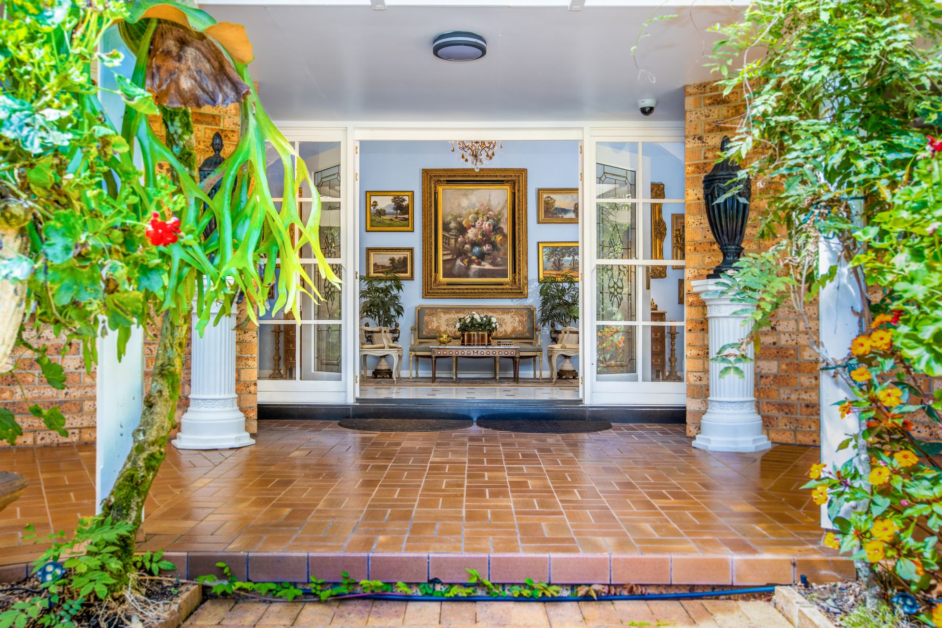 french doors to covered veranda and superb gardens