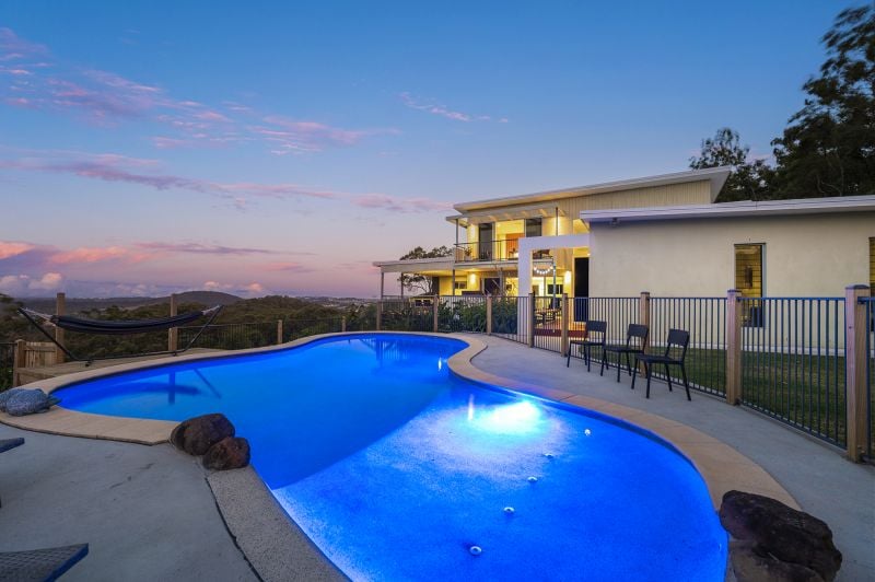 Outdoors, when youre not soaking up the sound of birdsong, keeping cool in the glass-fenced pool or tending to the chickens, youll love the chance to tend to your thriving permaculture garden. Bursting with seasonal fruits and vegetables, it offers a true paddock to plate cooking experience. Three separately fenced enclosures also await, all with self-filling water troughs, plus an arena and new round pen. Meander down to the Wongawallan Creek frontage that borders your allotment to visit the resident platypus plus have access to 4 x 50,000L rainwater tanks, solar hot water and solar power.
