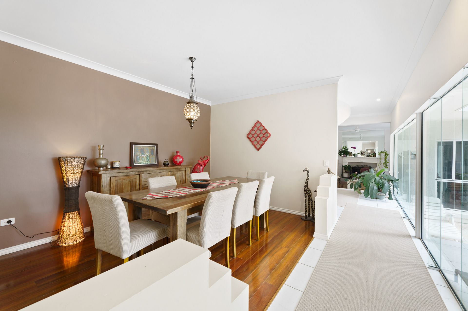 Formal lounge and dining zones, with glass-clad hallway to frame bushland views