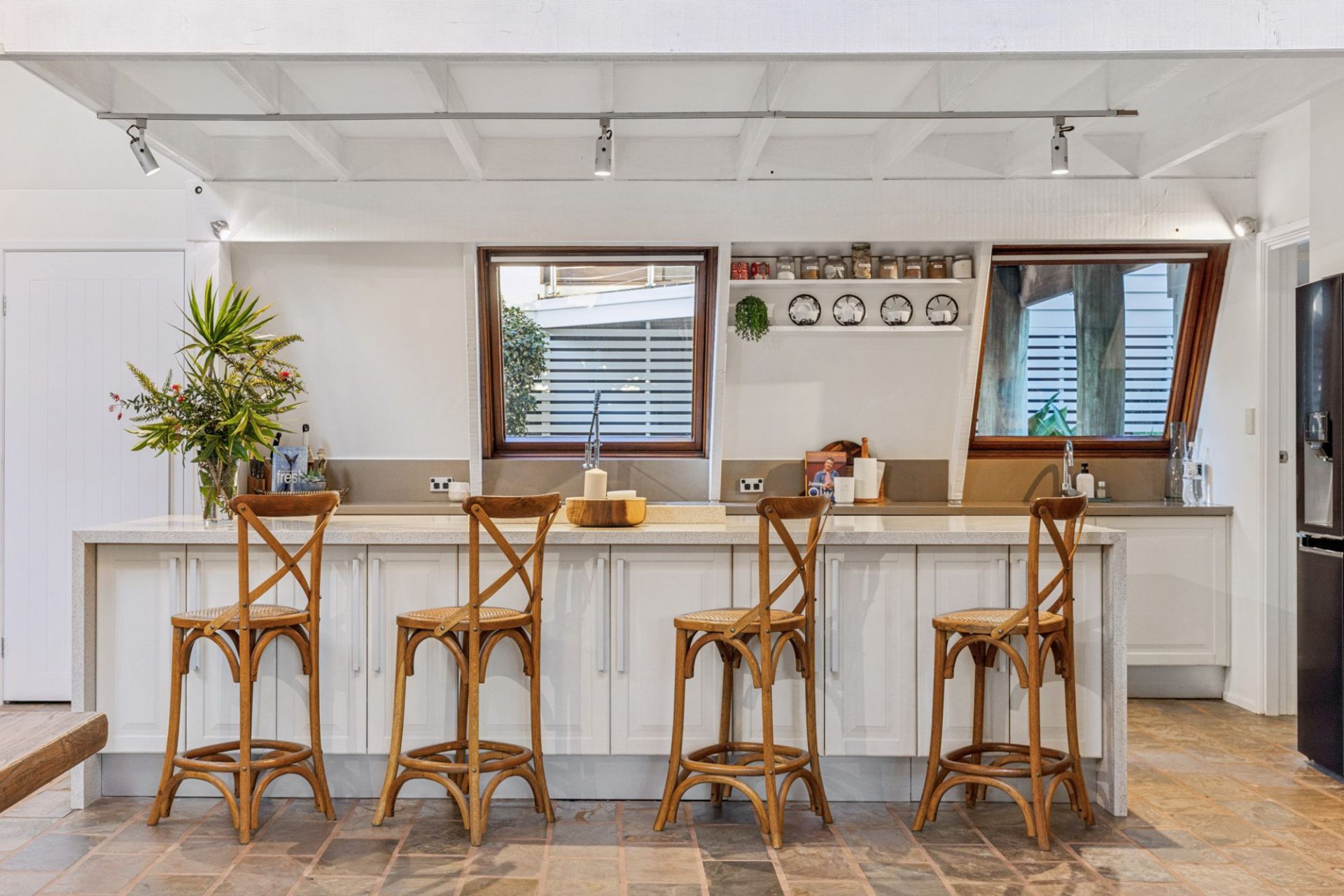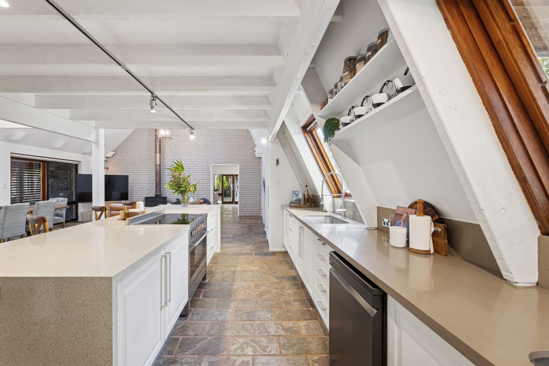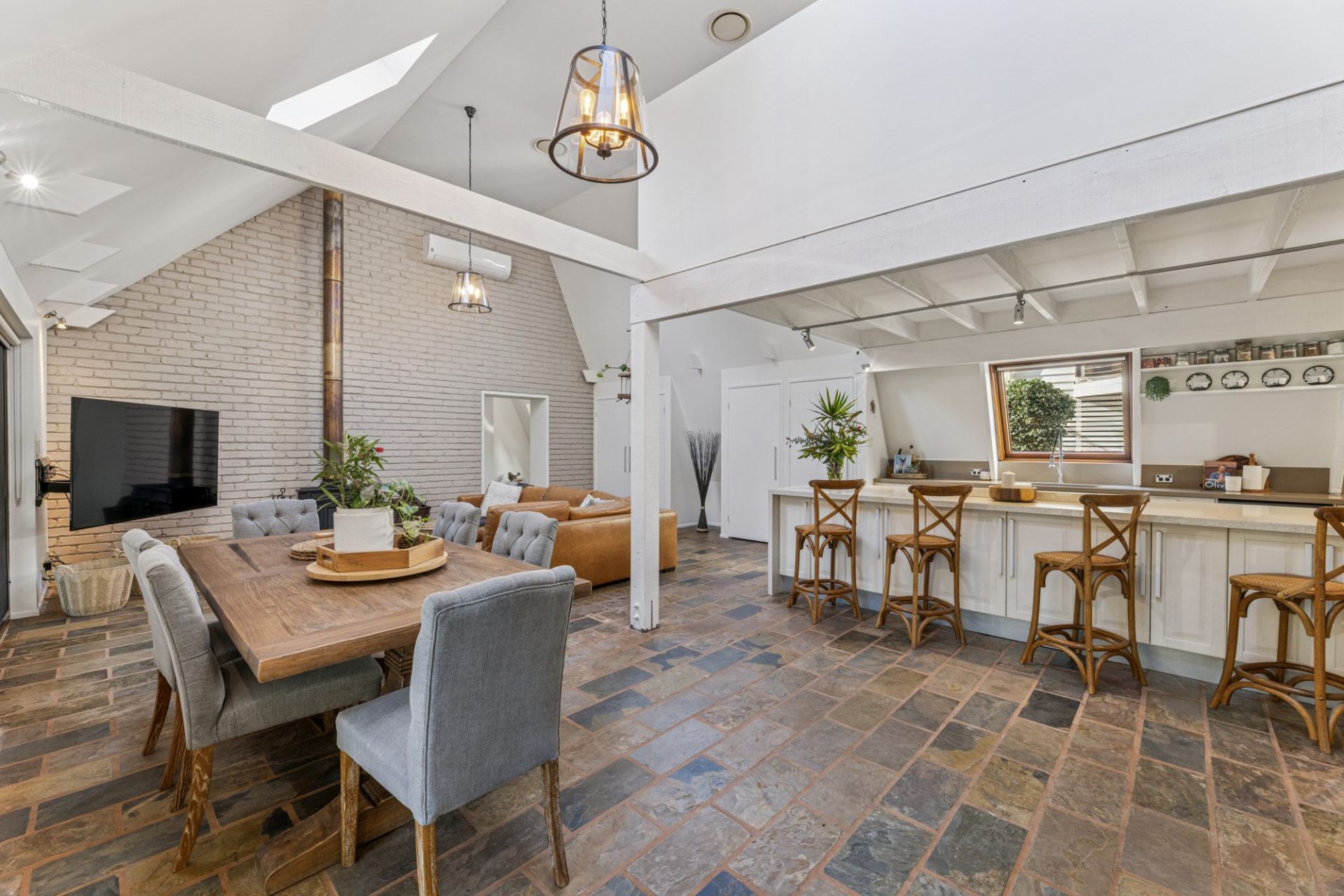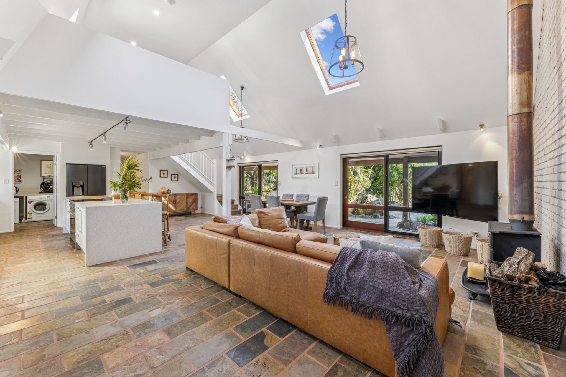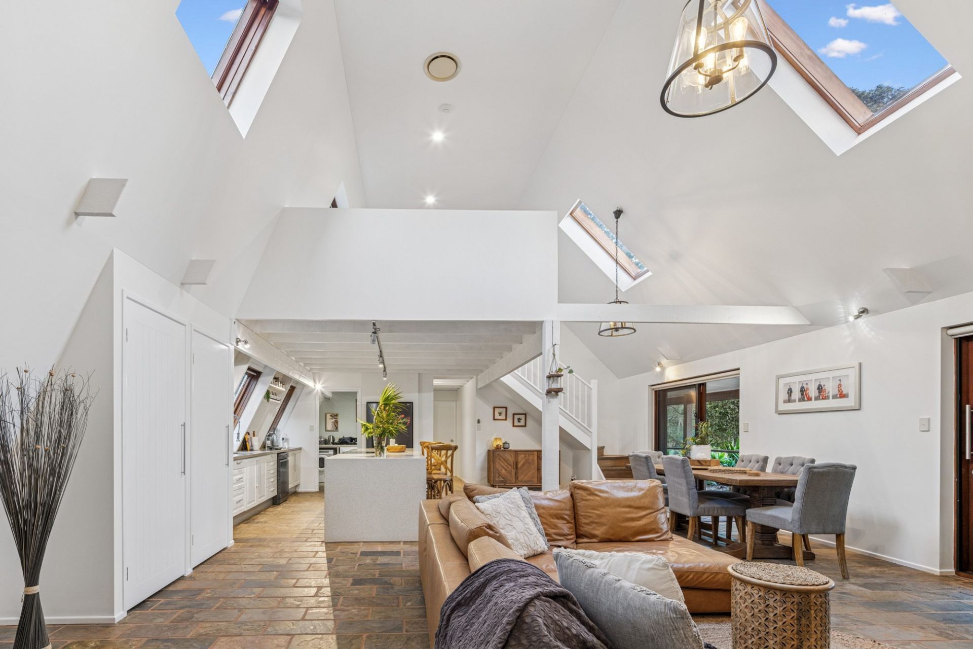 - Architect-designed home with soaring cathedral ceilings and open-plan living
