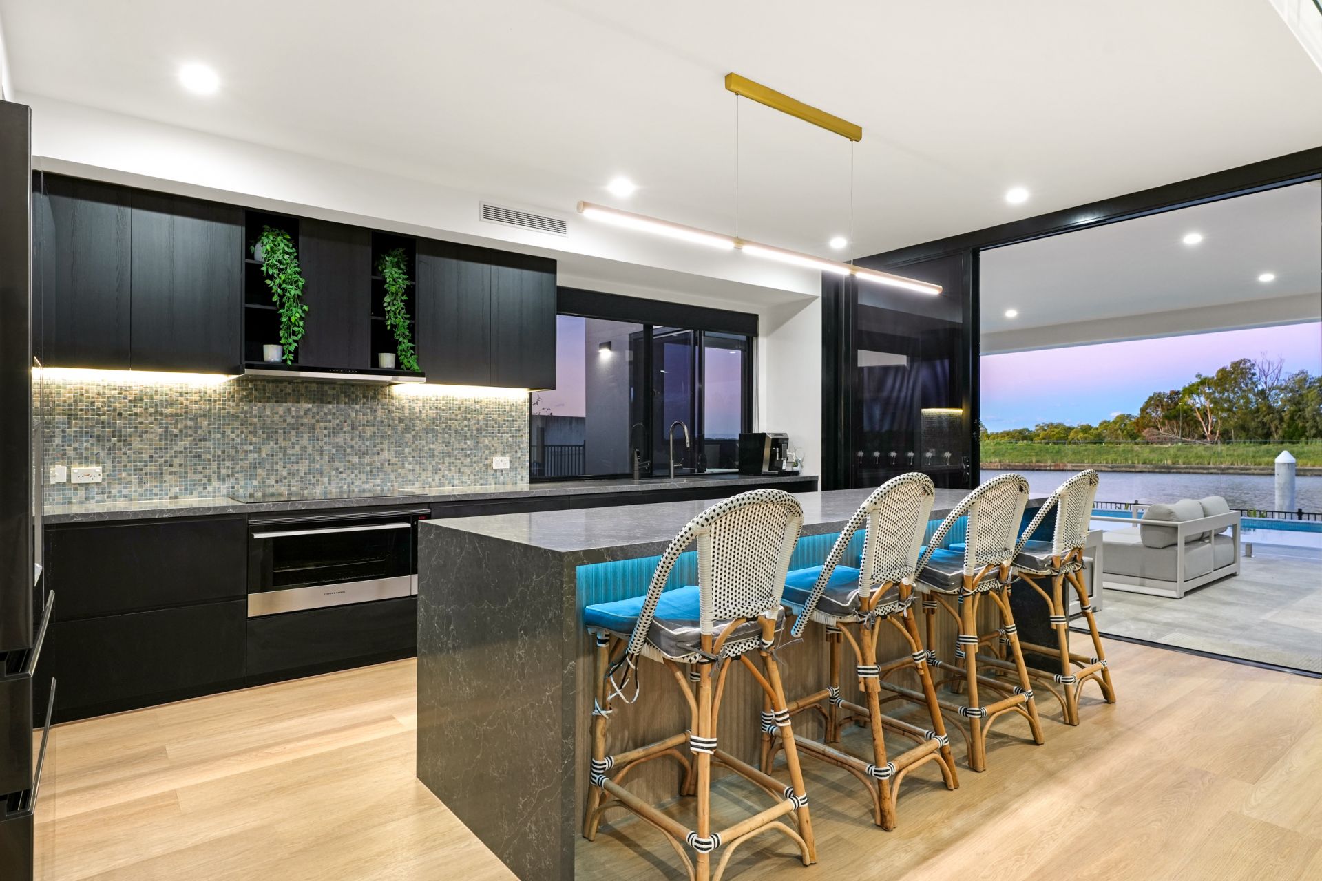 East-facing and occupying a generous 776m² block with 31 metres of direct, bridgeless deepwater frontage, this grand three-level home offers 669m² of bespoke living-meticulously constructed by a master builder for his own family. Every element has been crafted with precision, care, and a clear vision: to deliver an exceptional lifestyle framed by uninterrupted water views, smart design, and elegant finishes.